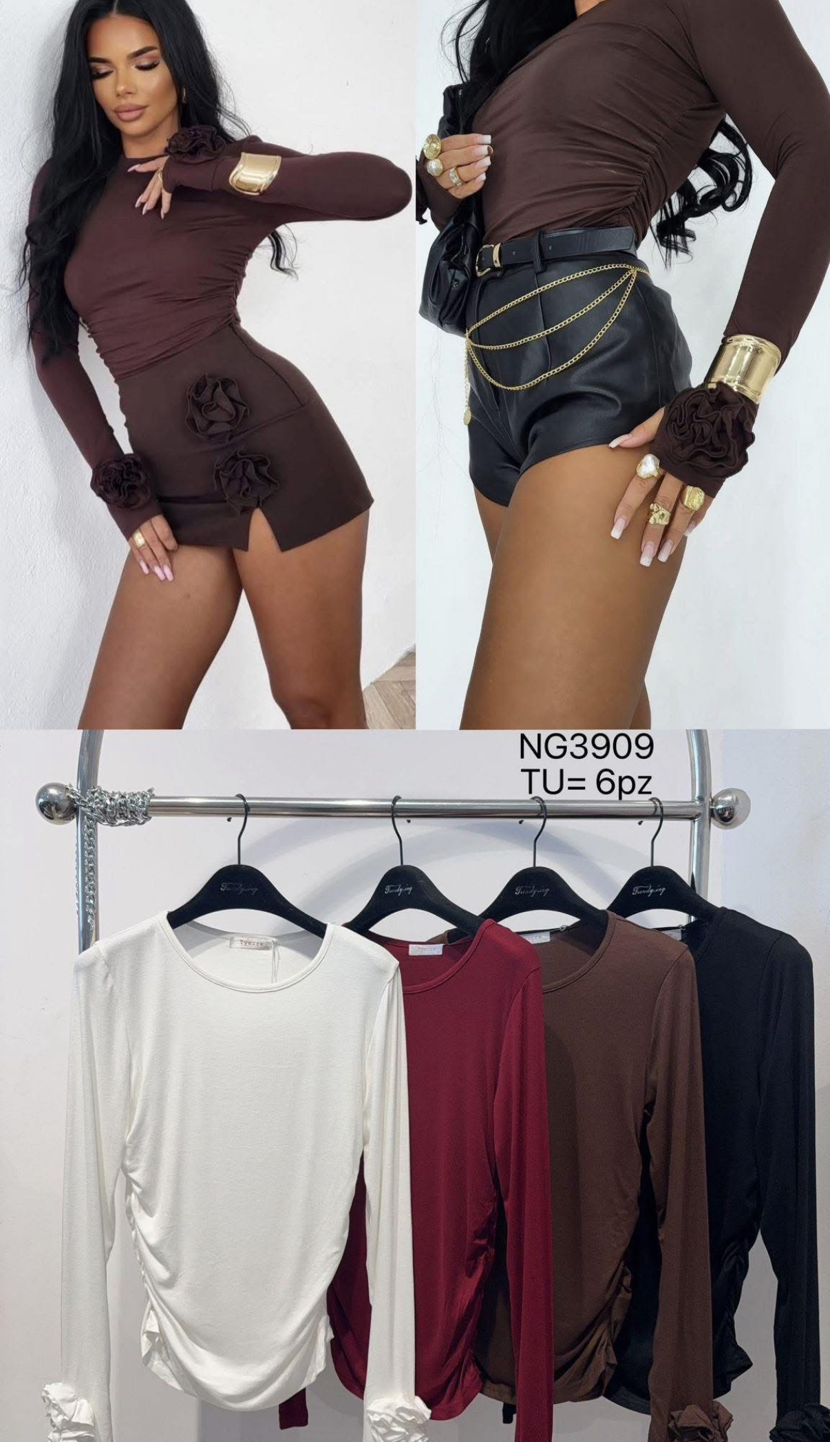 BLUZKA Z RÓŻĄ NA RĘKAWIE